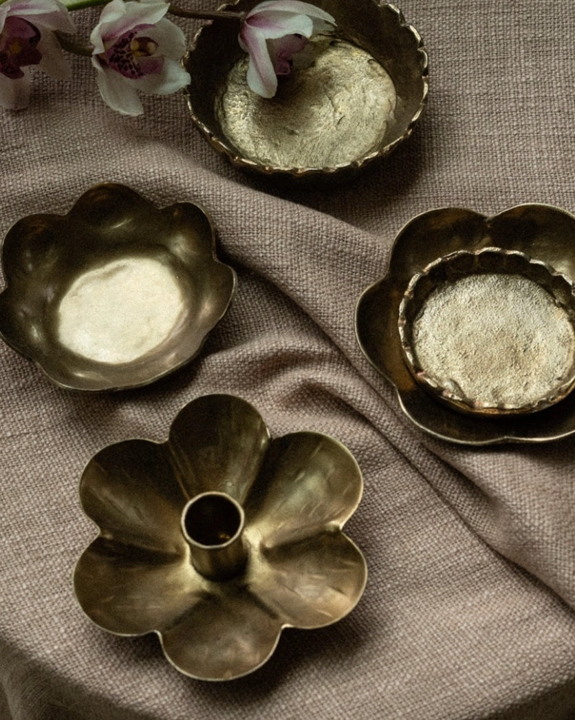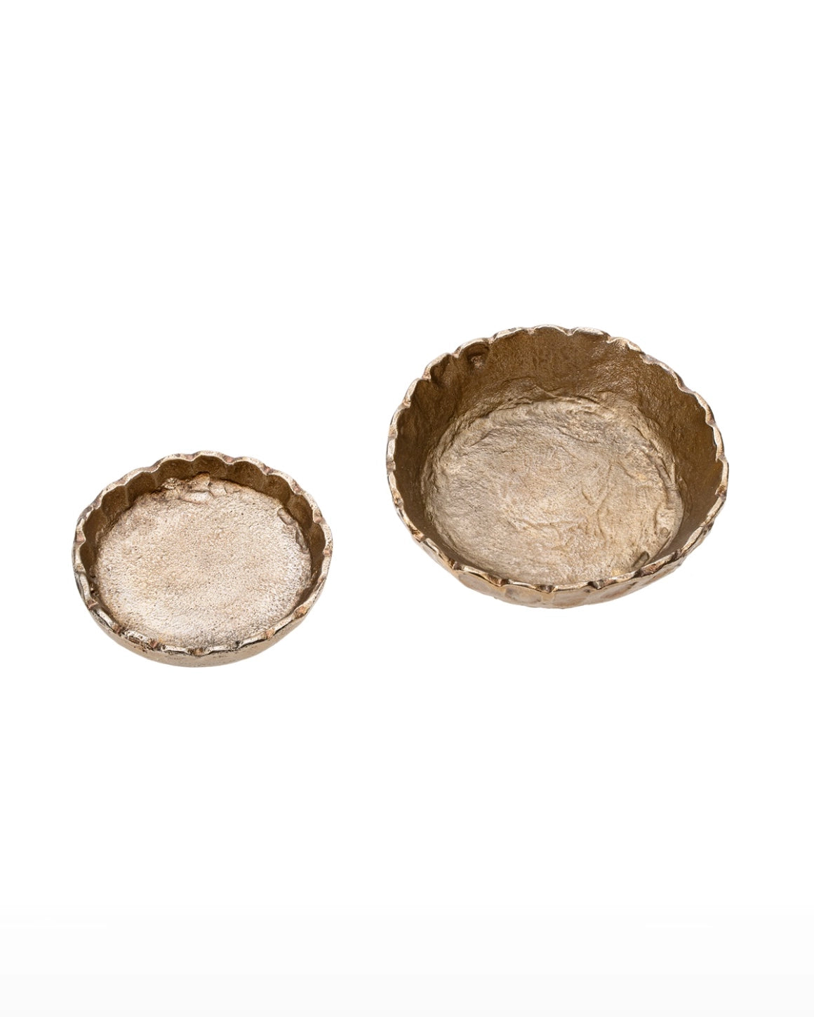 Hand forged using heat, hammers, and chisels, these solid iron catchalls are a beautiful display of traditional Indian artisanry. Designed to hold anything from candles, to coins, to key rings, we love their scalloped shape and antique gold finish.