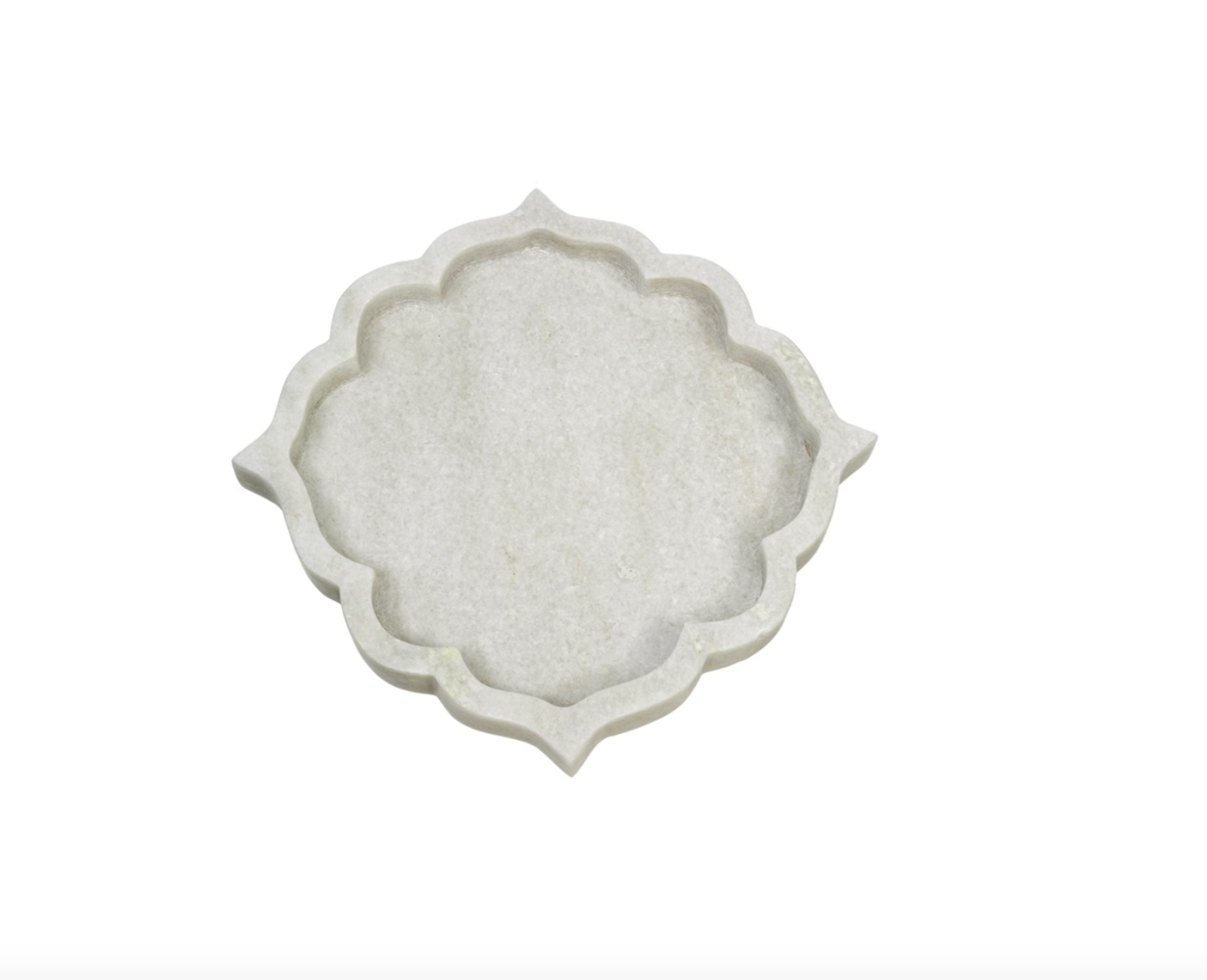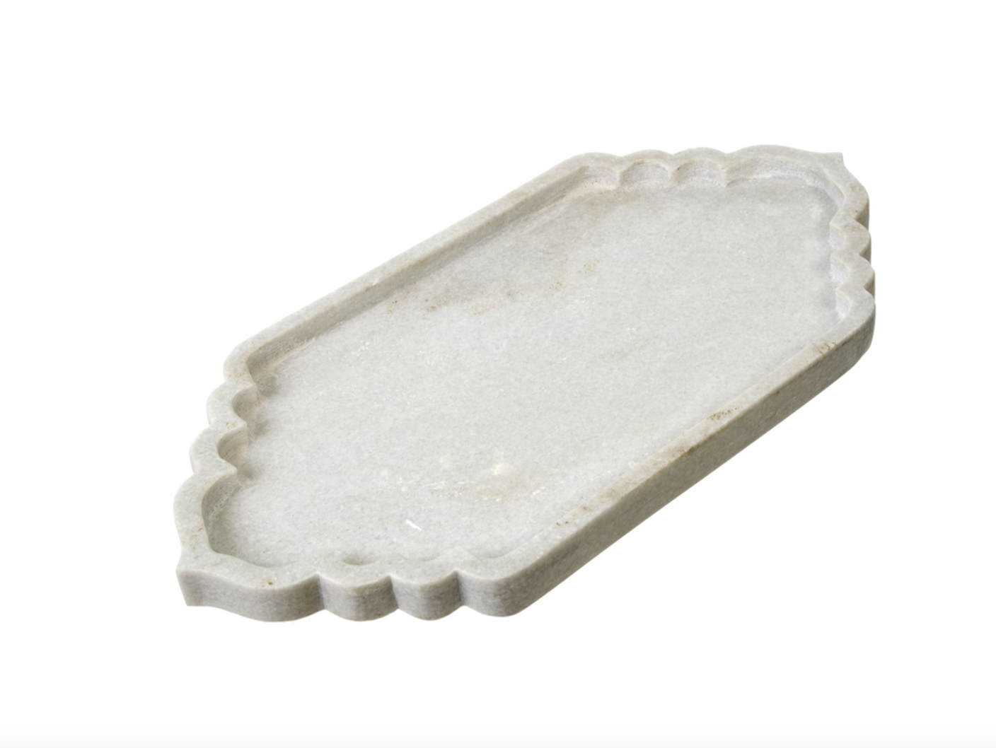 This beautifully hand carved marble tray can be placed in your boudoir to organize all your cosmetics. Because of the nature of marble, allow for random organic spotting and slight variation in sizes.