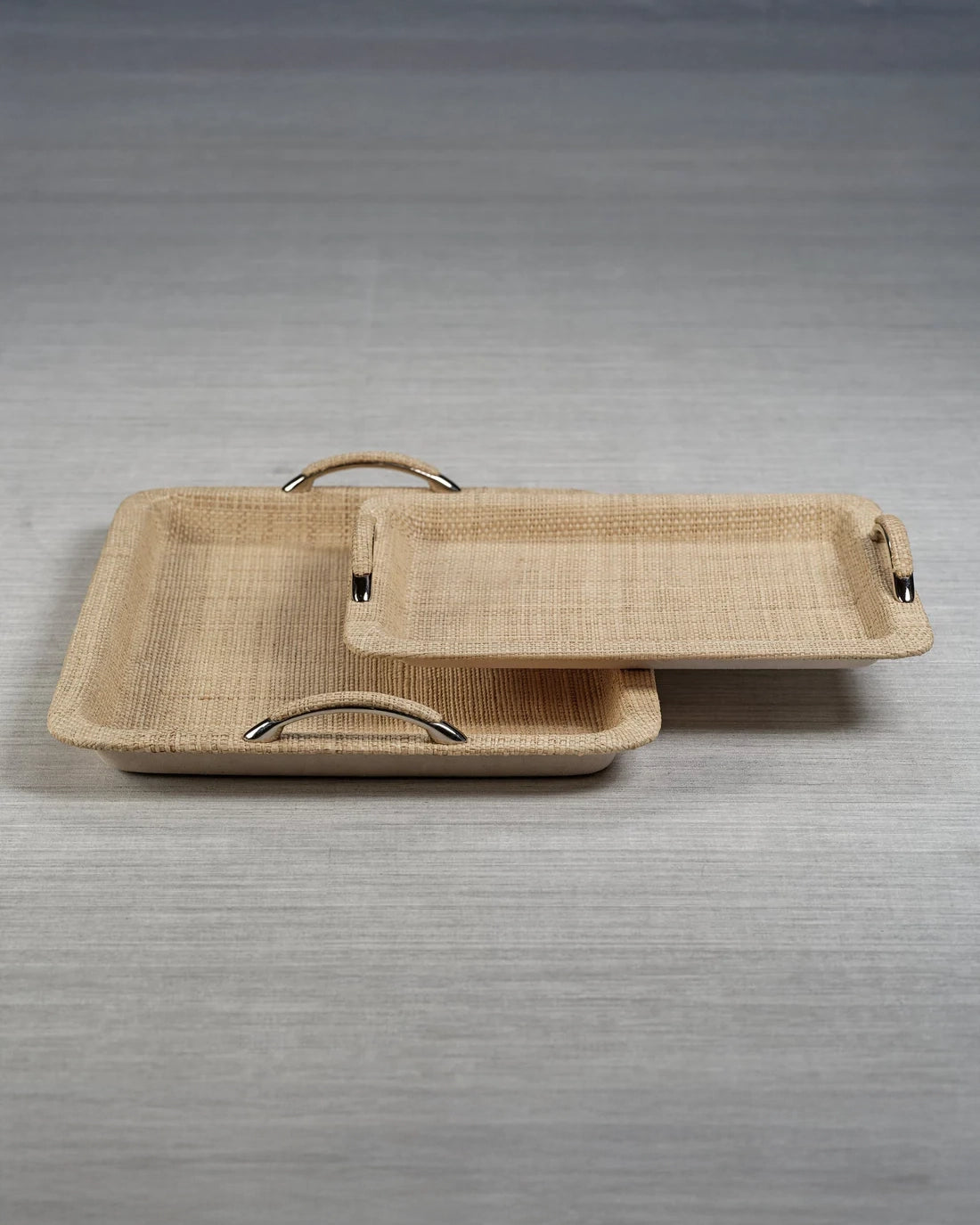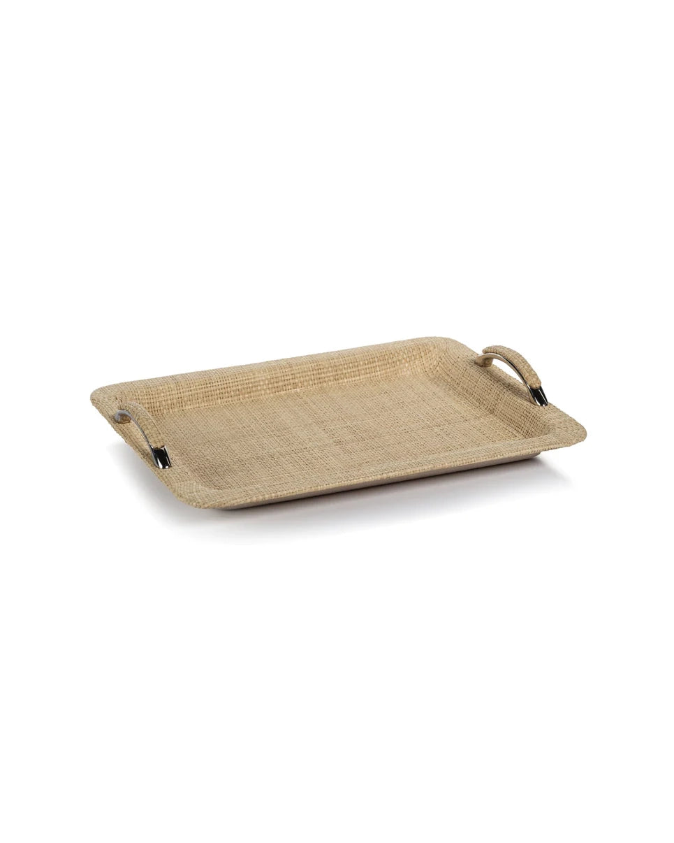 Featuring sturdy handles and a unique raffia design, add a touch of coastal charm to your dining experience with this tray. Perfect for entertaining or everyday use, elevate your serving game today!