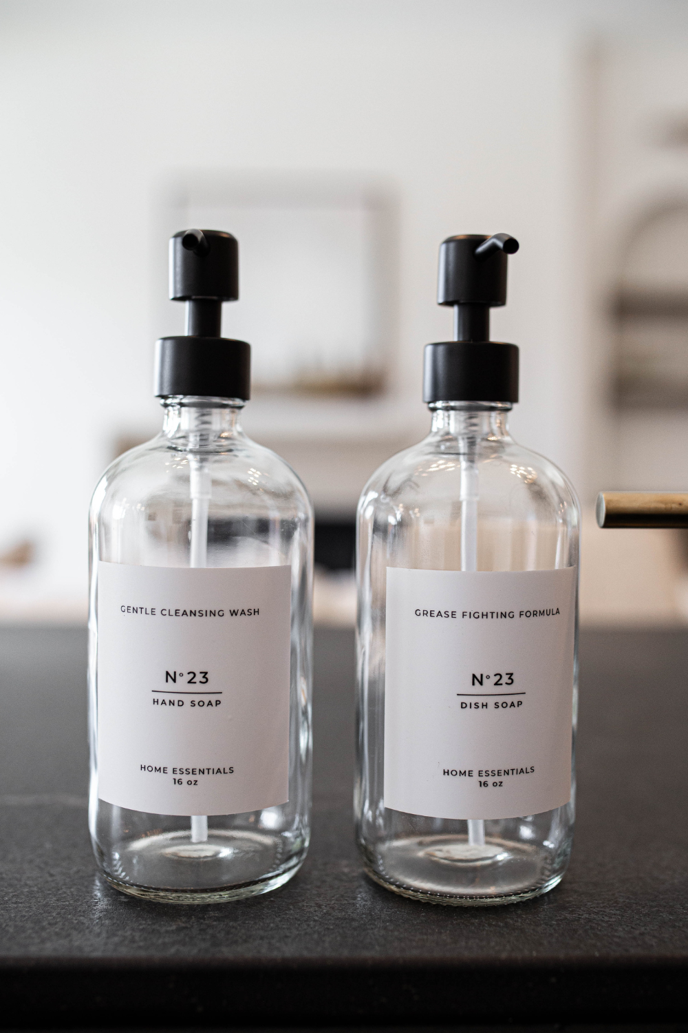 Glass Clear Liquid Pumps with Label (Dish Soap)