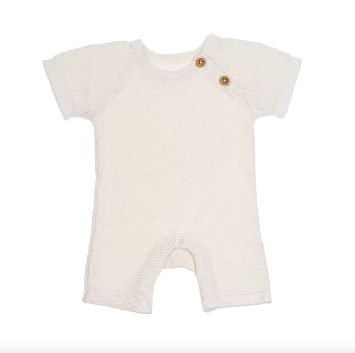 Dress your little one in adorable style with the Ellis Knit Jumpsuit. Featuring short sleeves, a classic finished neckline, and a soft cotton knit texture, this jumpsuit is as comfortable as it is charming. Convenient wooden buttons at the shoulder ensure easy dressing over the head, while the snap opening around the legs simplifies diaper changes. Machine Wash Gentle.