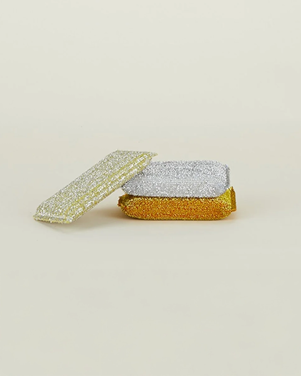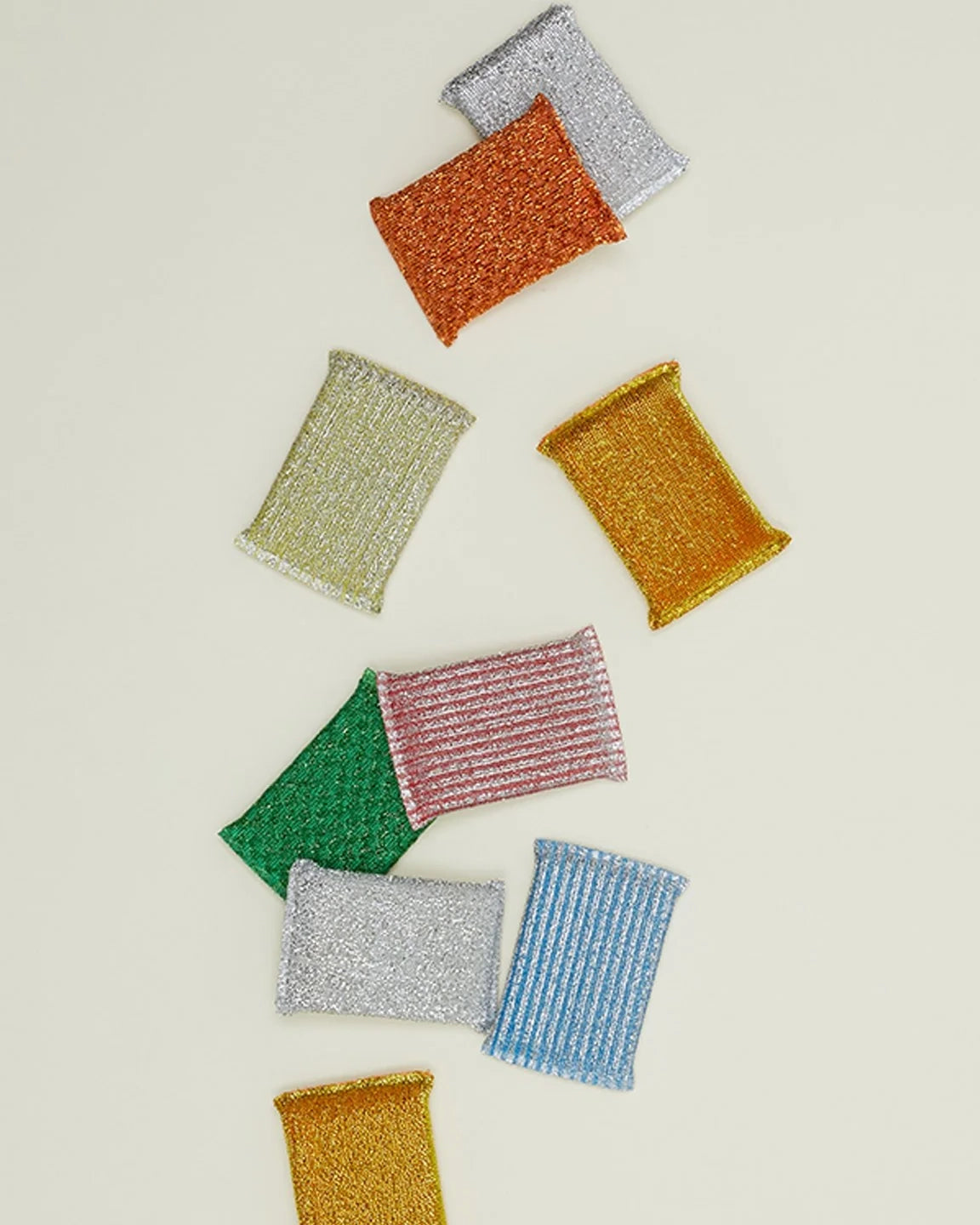 Let your kitchen sparkle - literally Comes in a set of 3, in 3 mixed colors Cute enough to leave on the counter Nothin' yucky to see here: you can throw these in the dishwasher