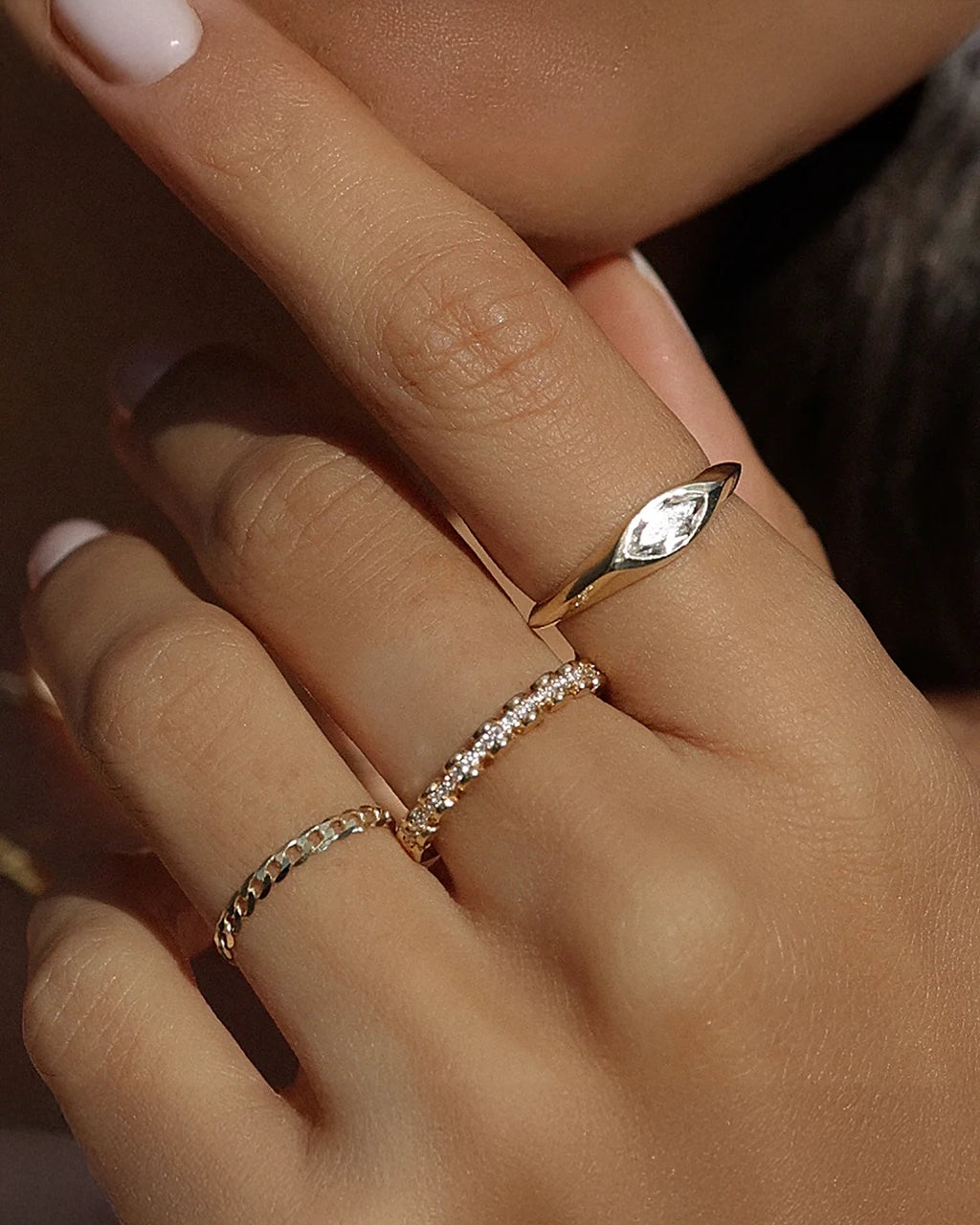 The Marquise Signet ring is our unique take on a classic design that has been around for centuries. This bold style has a marquise-shaped white topaz stone for maximum shine. It's giving diamond...without the price tag.