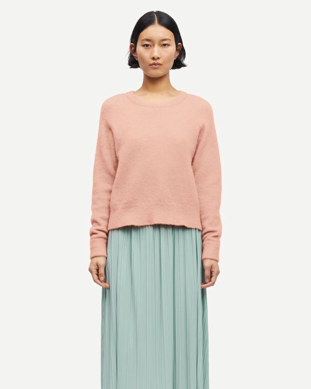 Sweater with a loose fit. Round neck. Main material made from a blend of alpaca wool and wool from the merino sheep.