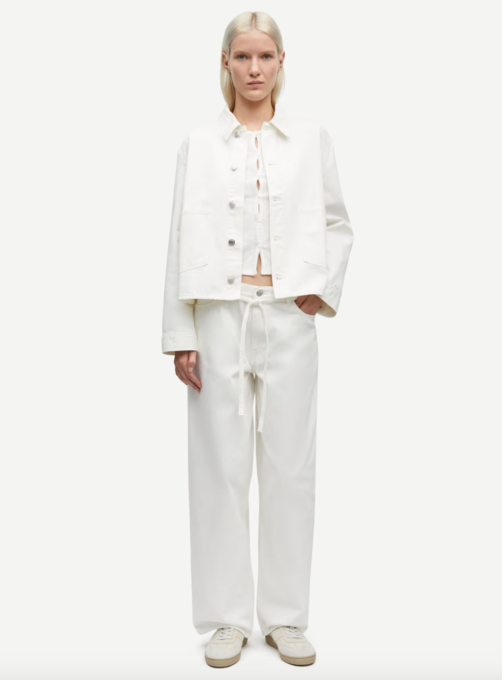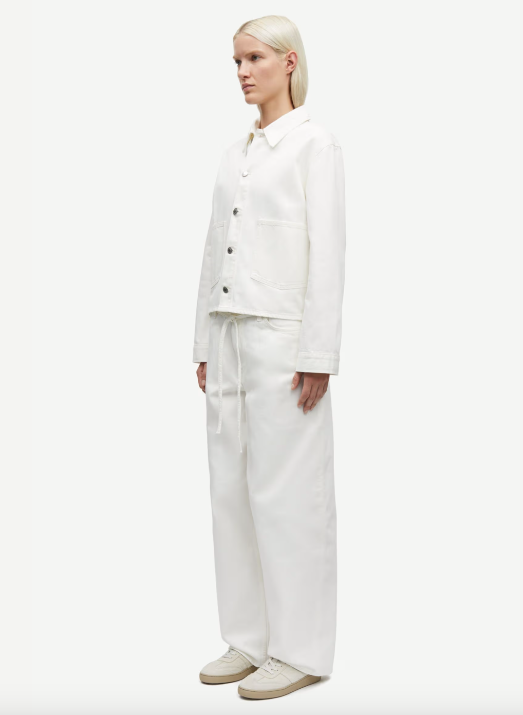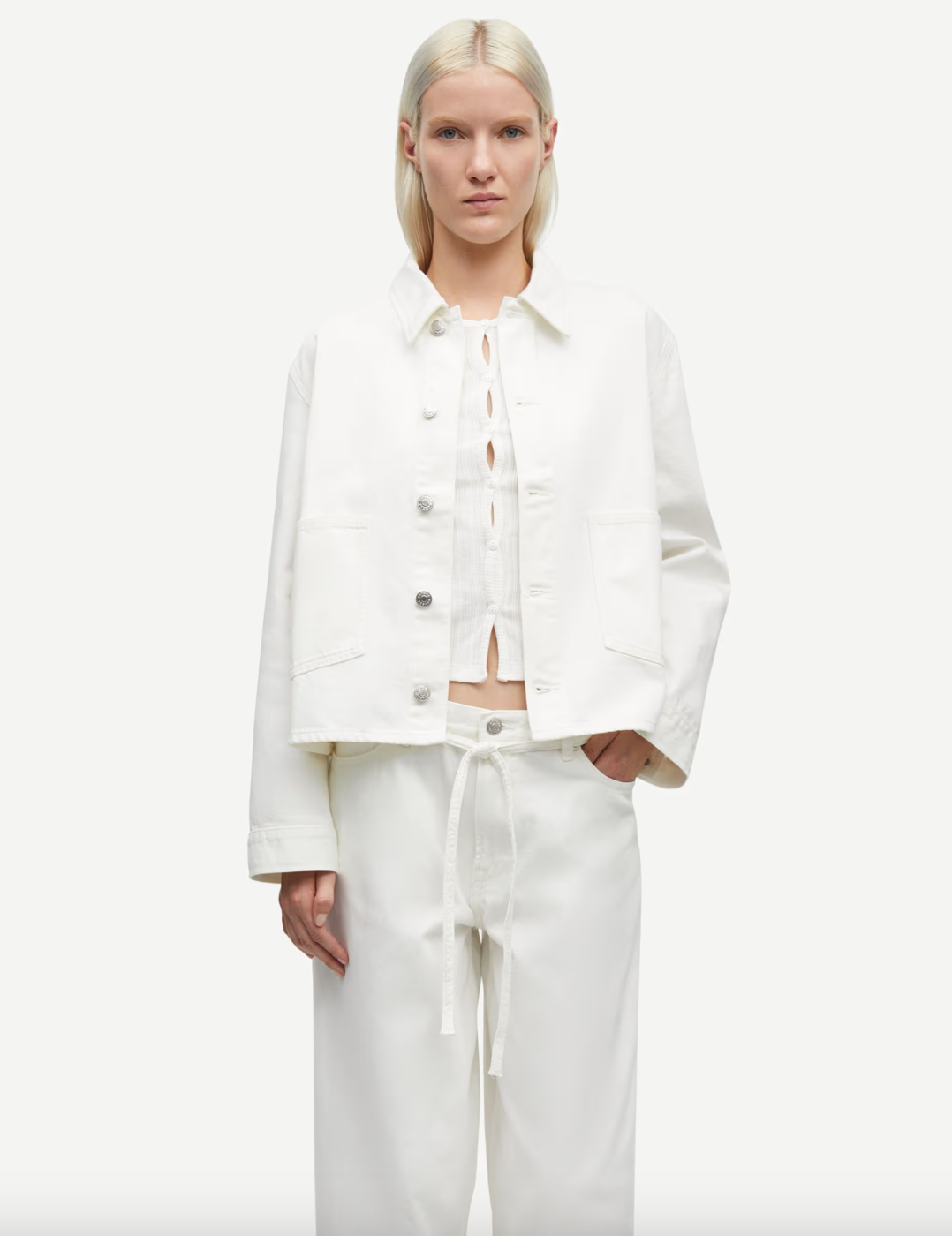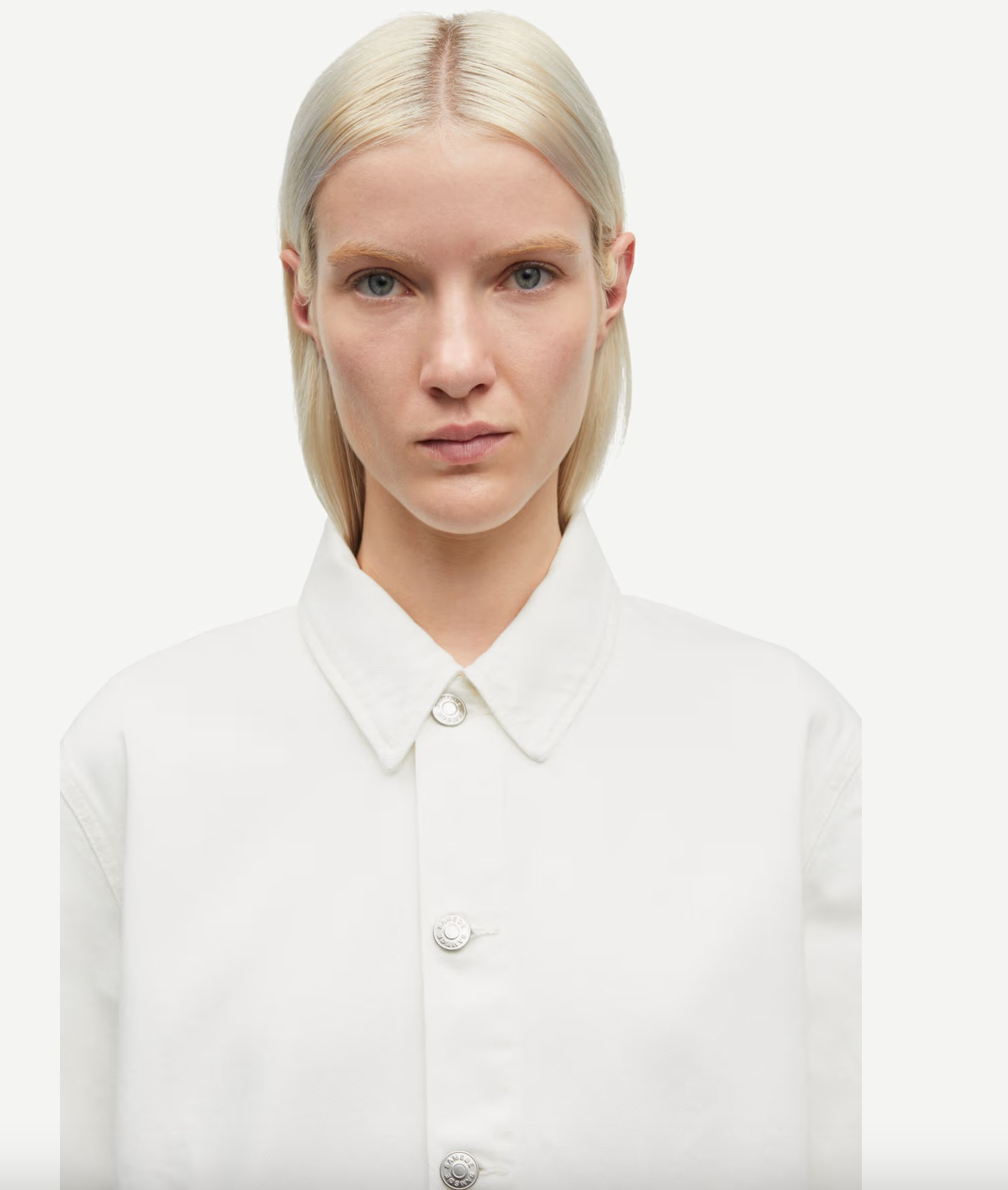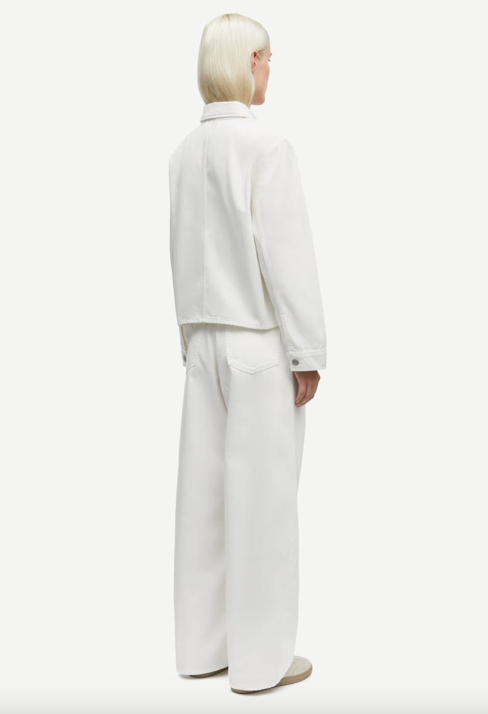 Denim jacket with a loose fit and dropped shoulder. Button closure on the front and buttoned cuffs. Patch pockets on the front. Logo branded buttons. Main material made from 100% organic cotton. This product is GOTS certified. Each stage of the supply chain has met strict social, environmental, and chemical requirements.