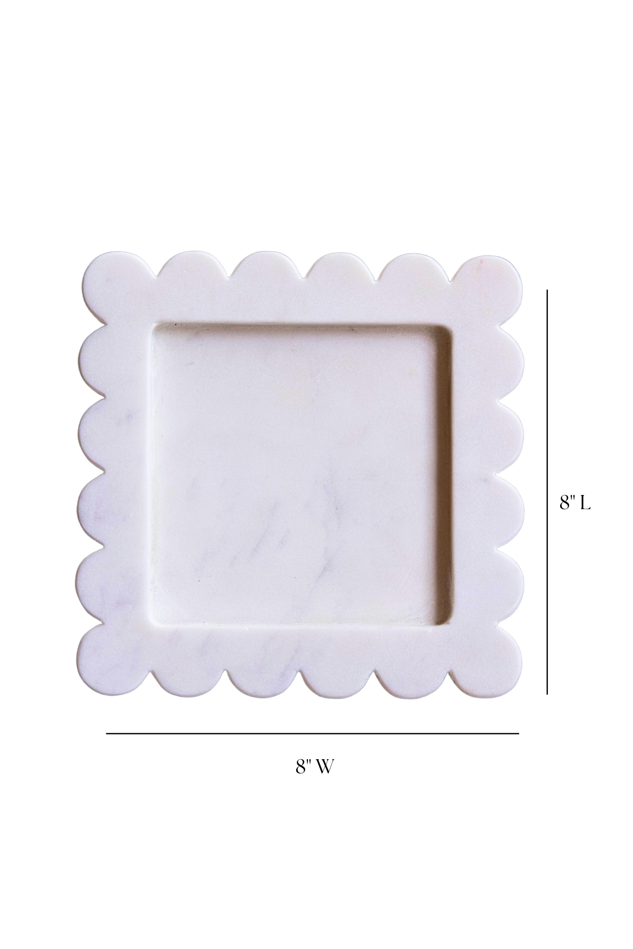 This distinguished marble piece can bring an elevated aesthetic to any setting with its refined texture and stunning scalloped elements. Perfect for organizing items on your countertop or vanity, the natural stone construction makes each piece unique.
