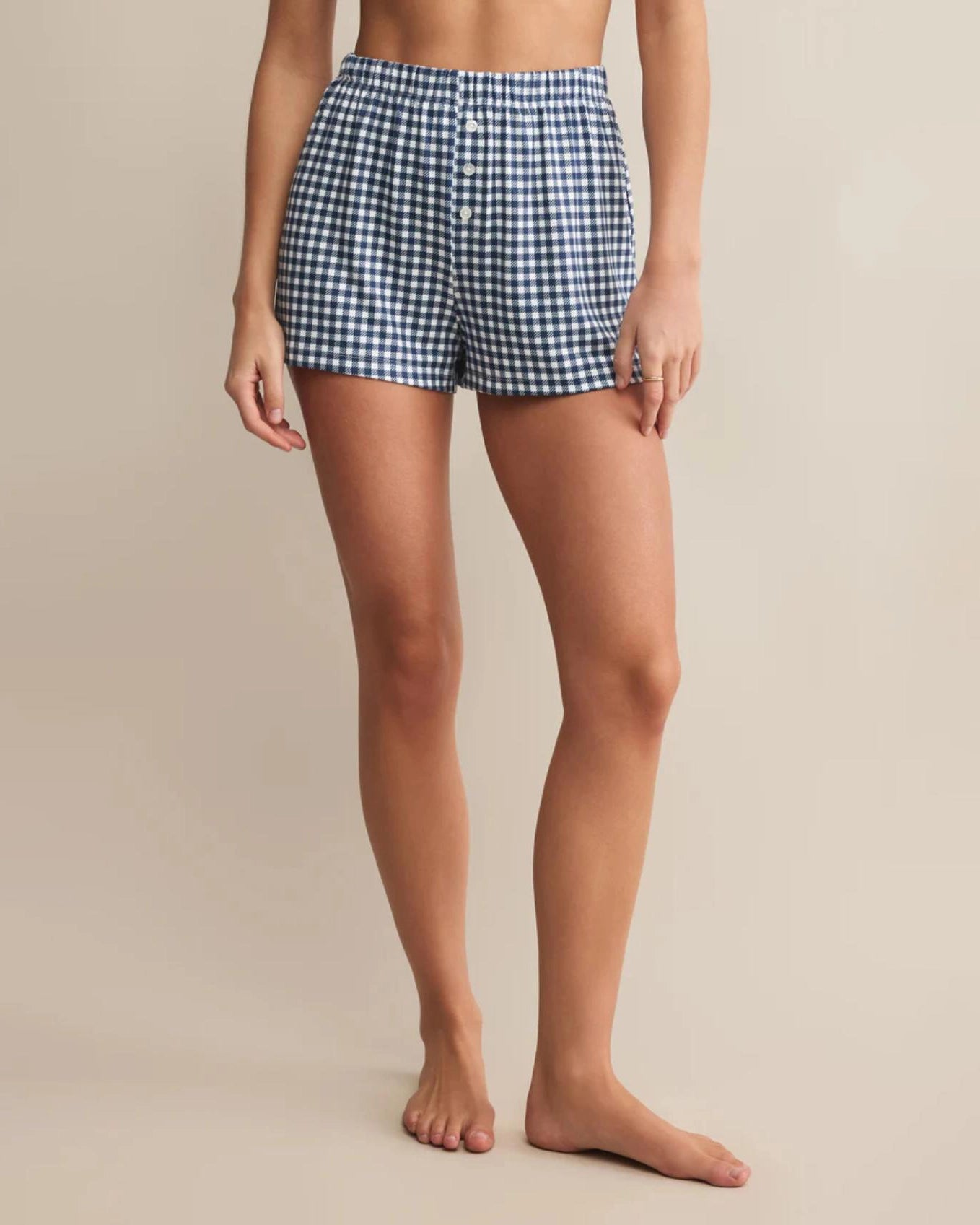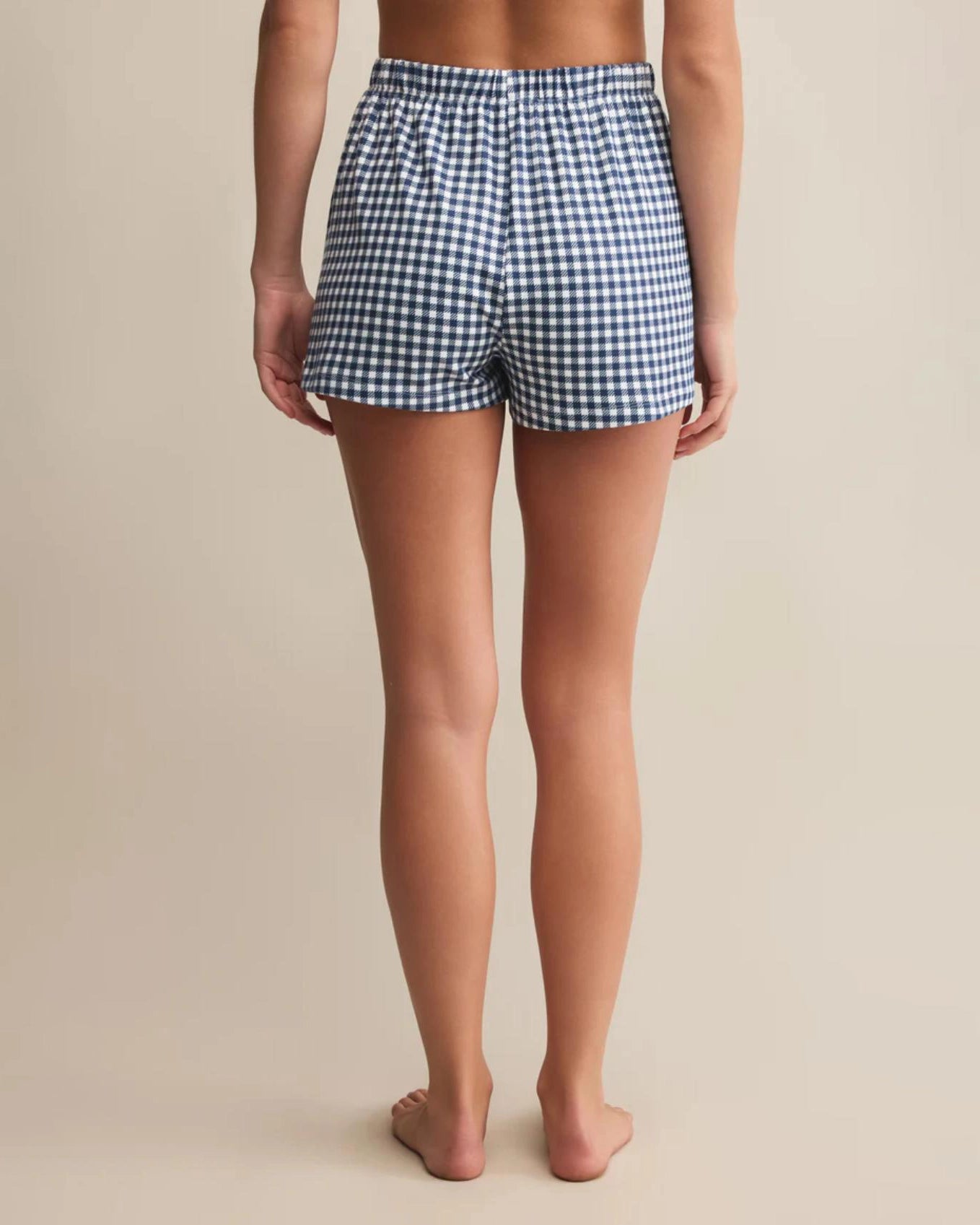 Easy does it in this relaxed high-rise short, made from our ultra-soft silky jersey fabric and finished with a classic gingham print. An elastic waistband keeps it comfy, whether you're relaxing or staying in.