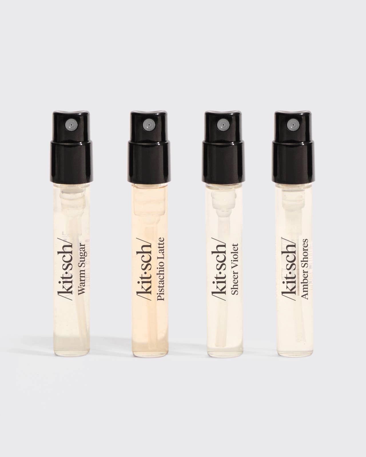 Includes 4 sample-sized versions of Warm Sugar, Pistachio Latte, Sheer Violet, and Amber Shores Hair Perfume