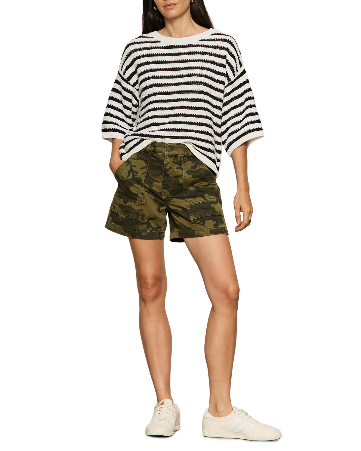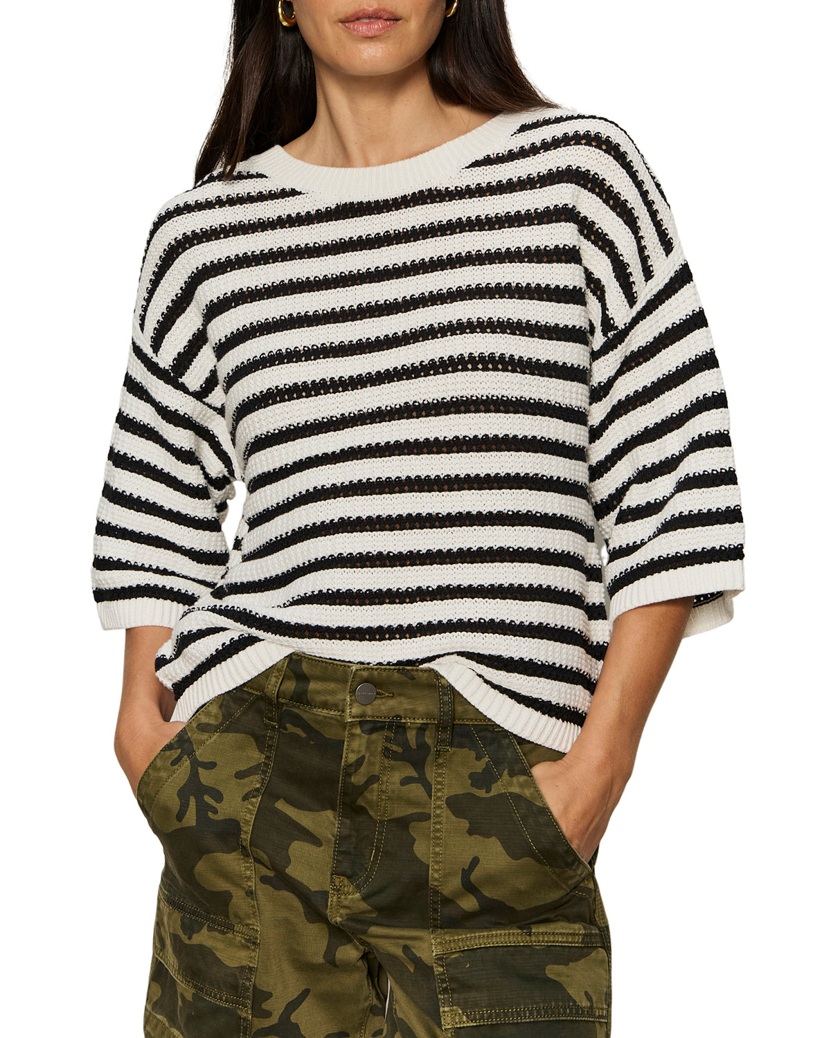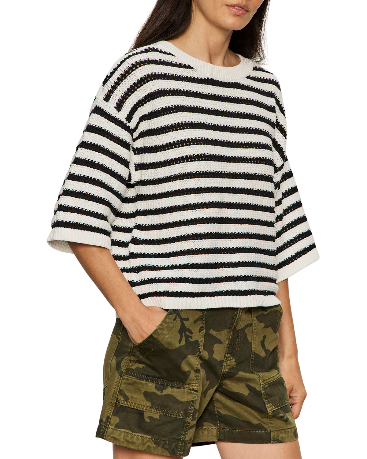 Elle Sweater Tee | Black/Chalk Stripe