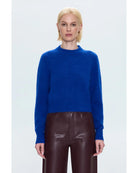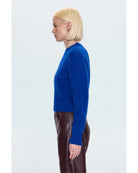 The cropped sweater that elevates everything. Sara delivers shrunken perfection with a classic crewneck silhouette and cropped proportions that feel modern and intentional. Crafted from a luxurious blend of 45% alpaca, 34% acrylic, 19% nylon, and 2% spandex that feels incredibly soft yet maintains its expert shape. Azure brings vibrant sophistication with its brilliant blue hue that commands attention with confident color.