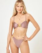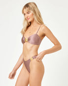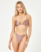 The Day Dream Bikini Bottom brings the perfect amount of flair thanks to the gorgeous gold starfish hardware that embellish the side of each hip and the shine fabric. A mid-rise, high-leg and bitsy coverage allow you to show some skin at the same time.