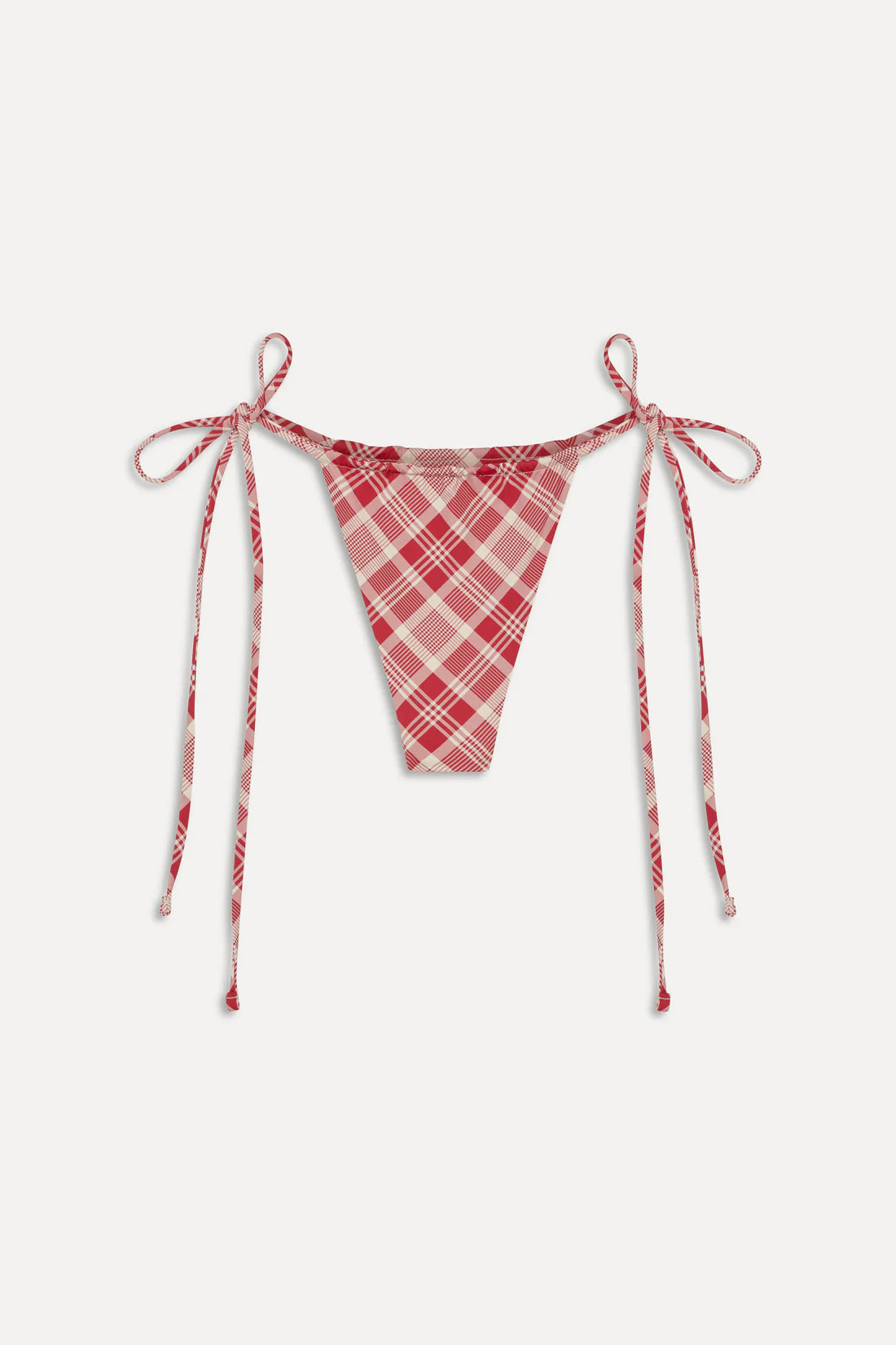 Sexy and slimming with a flirty ruched detail and string side ties, the Tia bikini bottom takes the ultimate skimpy silhouette to a new level. Exclusively from the Bella Hadid x Frankies Bikinis collaboration.