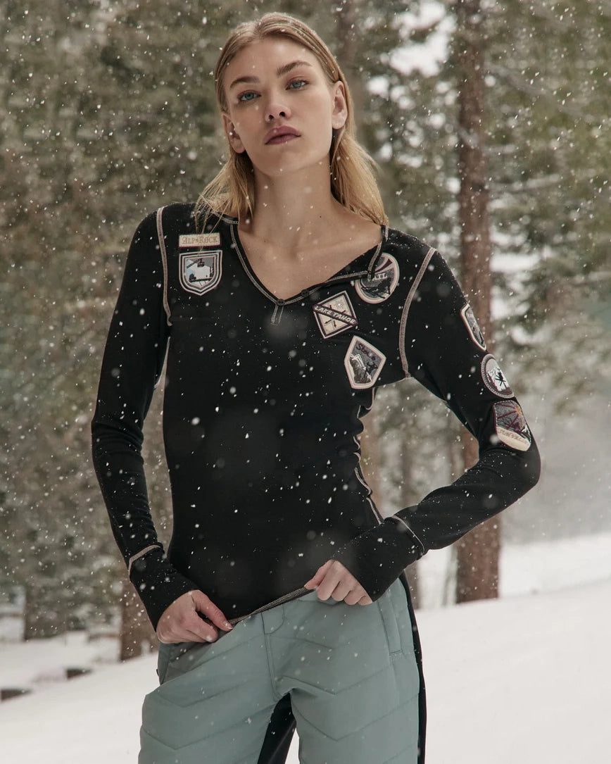 Earn your patches in the USA Resort Henley Shirt, a classic Alp N Rock style adorned with patches from the best and most-loved ski resorts in the United States. Every patch has been meticulously designed and embroidered, making this longsleeve a truly special style for winter lovers, slope chasers, and snow enthusiasts alike.