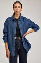 The Whitney button-down shirt is made of a denim fabric that has been specially washed for a perfectly lived-in look. Features include a patch pocket and side slits.