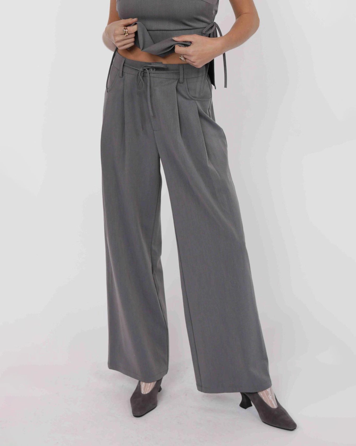 Cheeky Pleated Pants With Belt | Grey