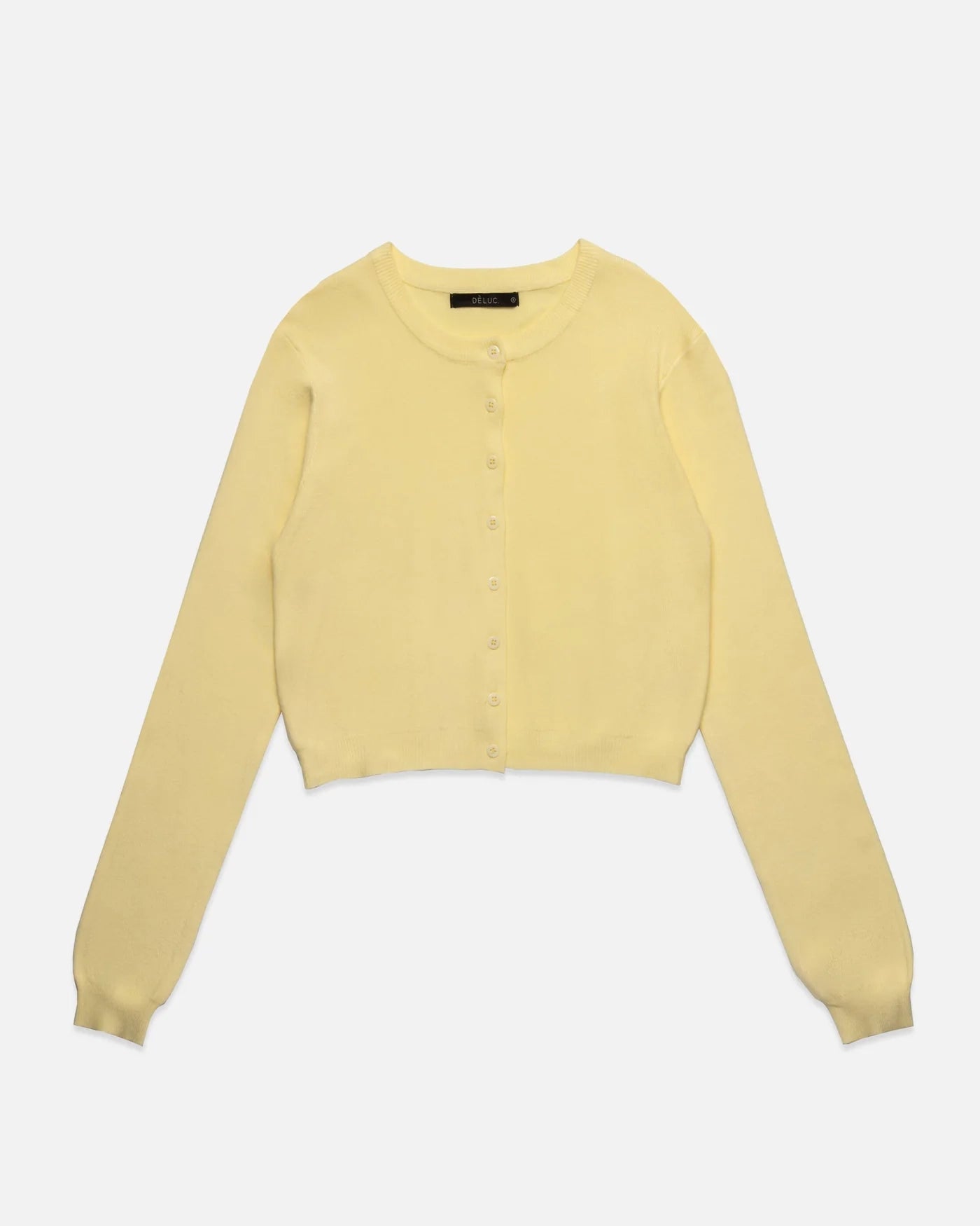 Viscose-blend cardigan with a round neckline and long sleeves. Finished with ribbed cuffs, a cropped length, and a front button closure.