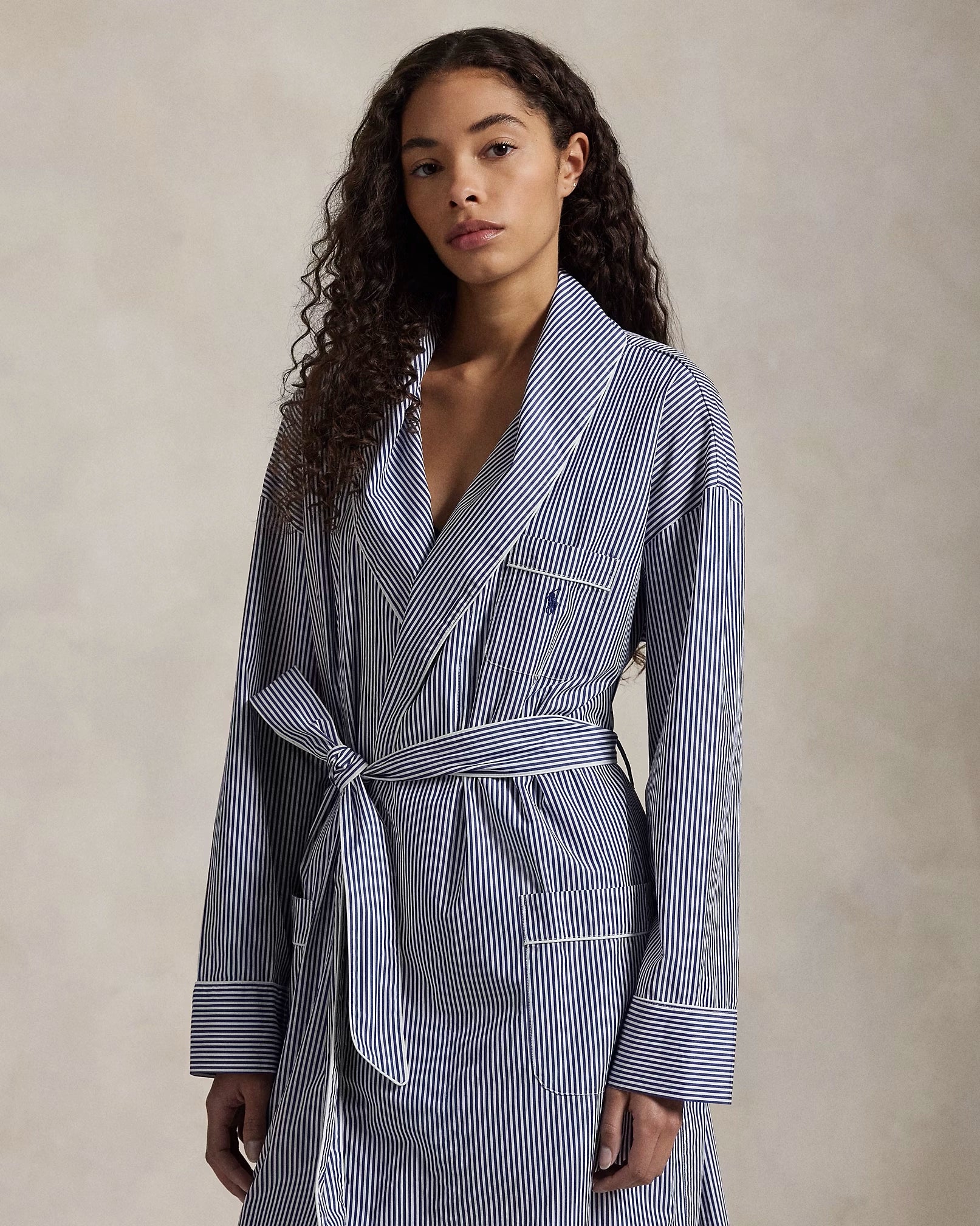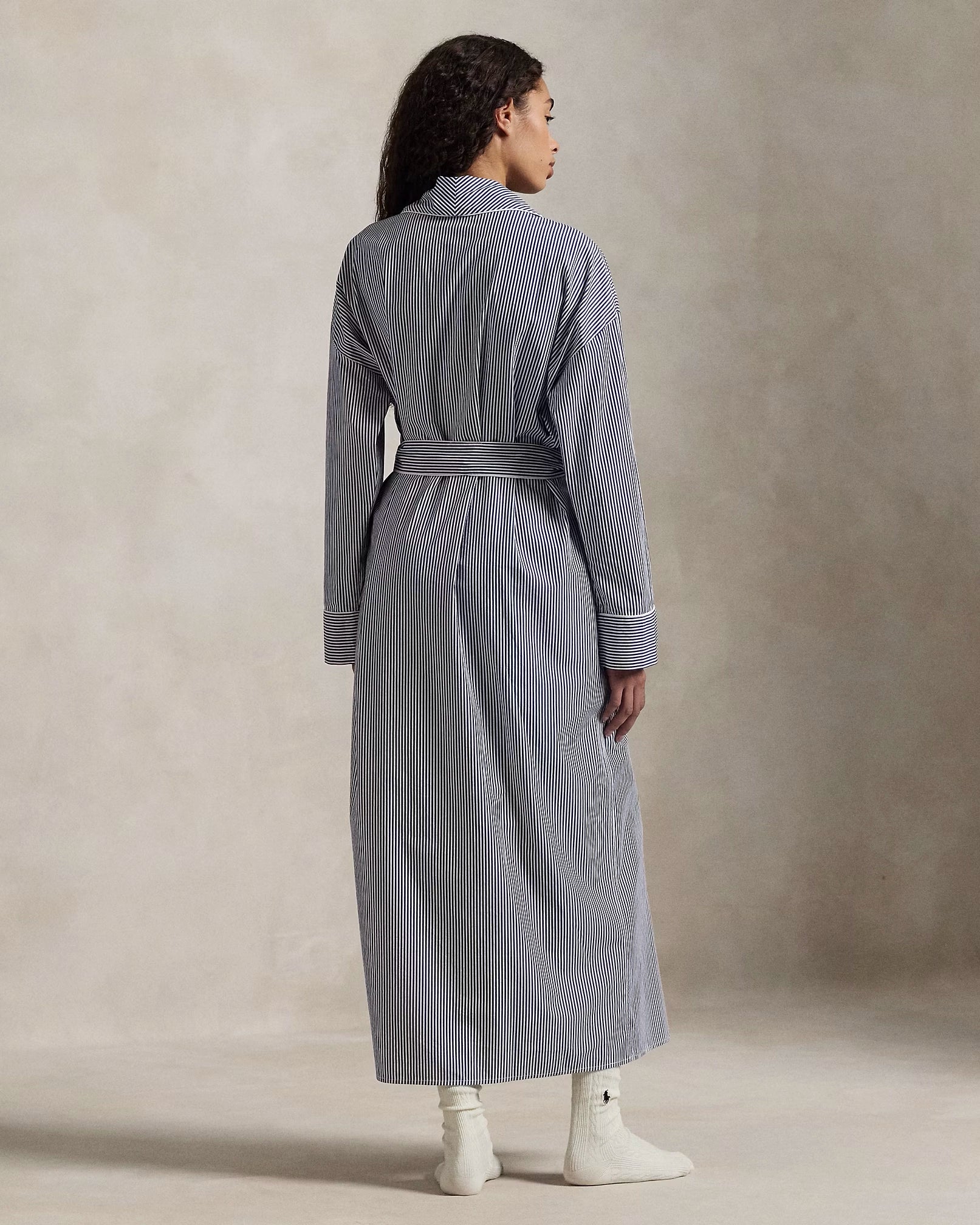Crafted from cotton poplin for a light weight and a smooth hand, this belted robe features a classic striped motif and is embroidered with Ralph Lauren's signature Pony on the chest.