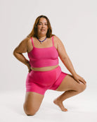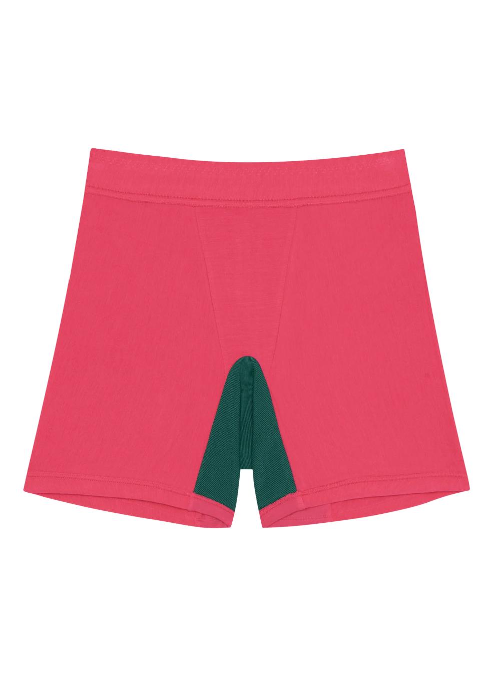 Our Mid Boxer is made for those that value comfort with coverage. High-waisted and extending to your upper-mid thigh, this versatile style is made for lounging, lunging, or anything in between. The fabric-covered, elasticated waistband and elastic-free leg cuffs hold their shape without digging into yours. Features a cute visible front panel for soft yet structured support.