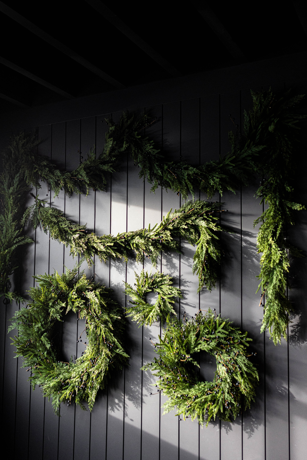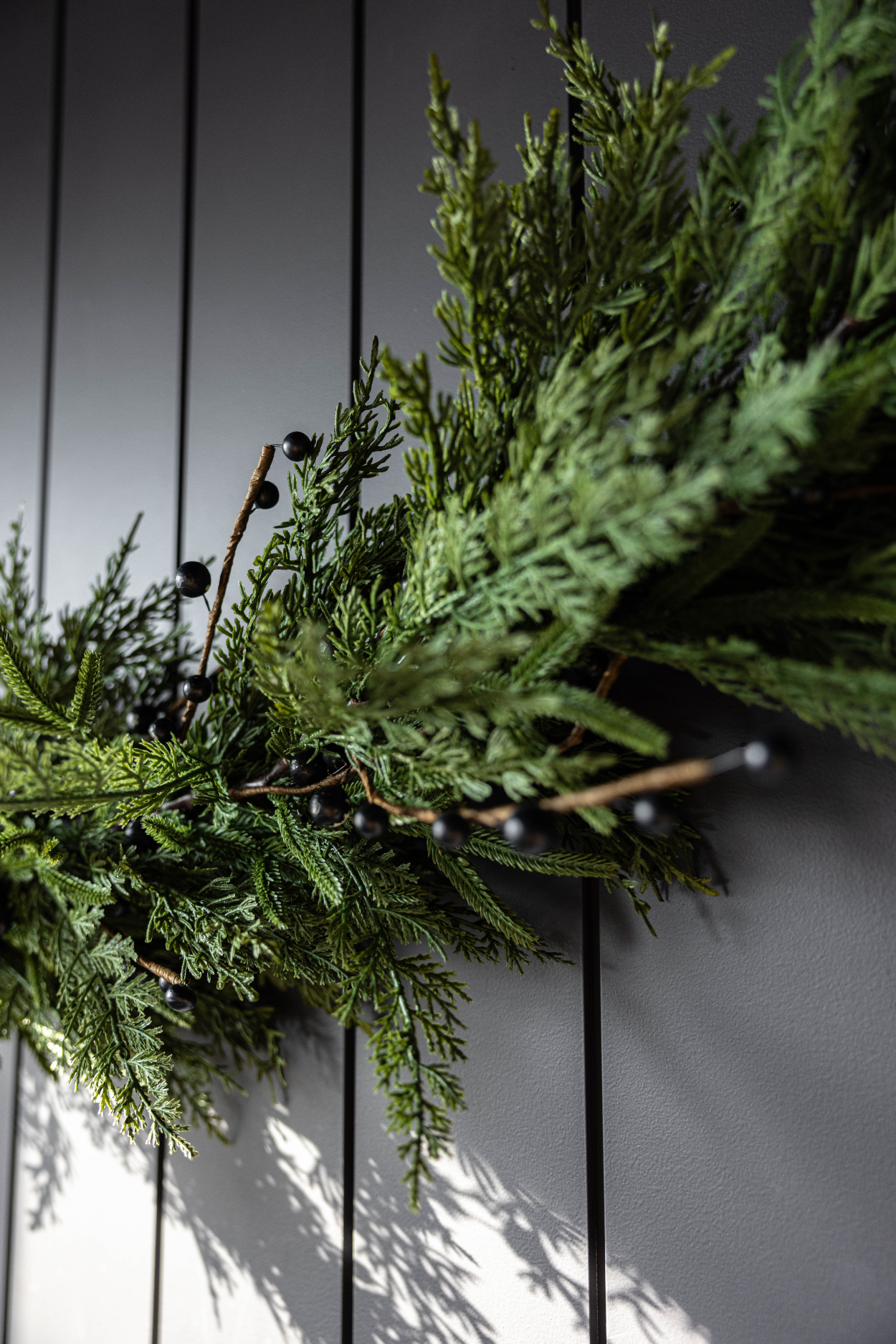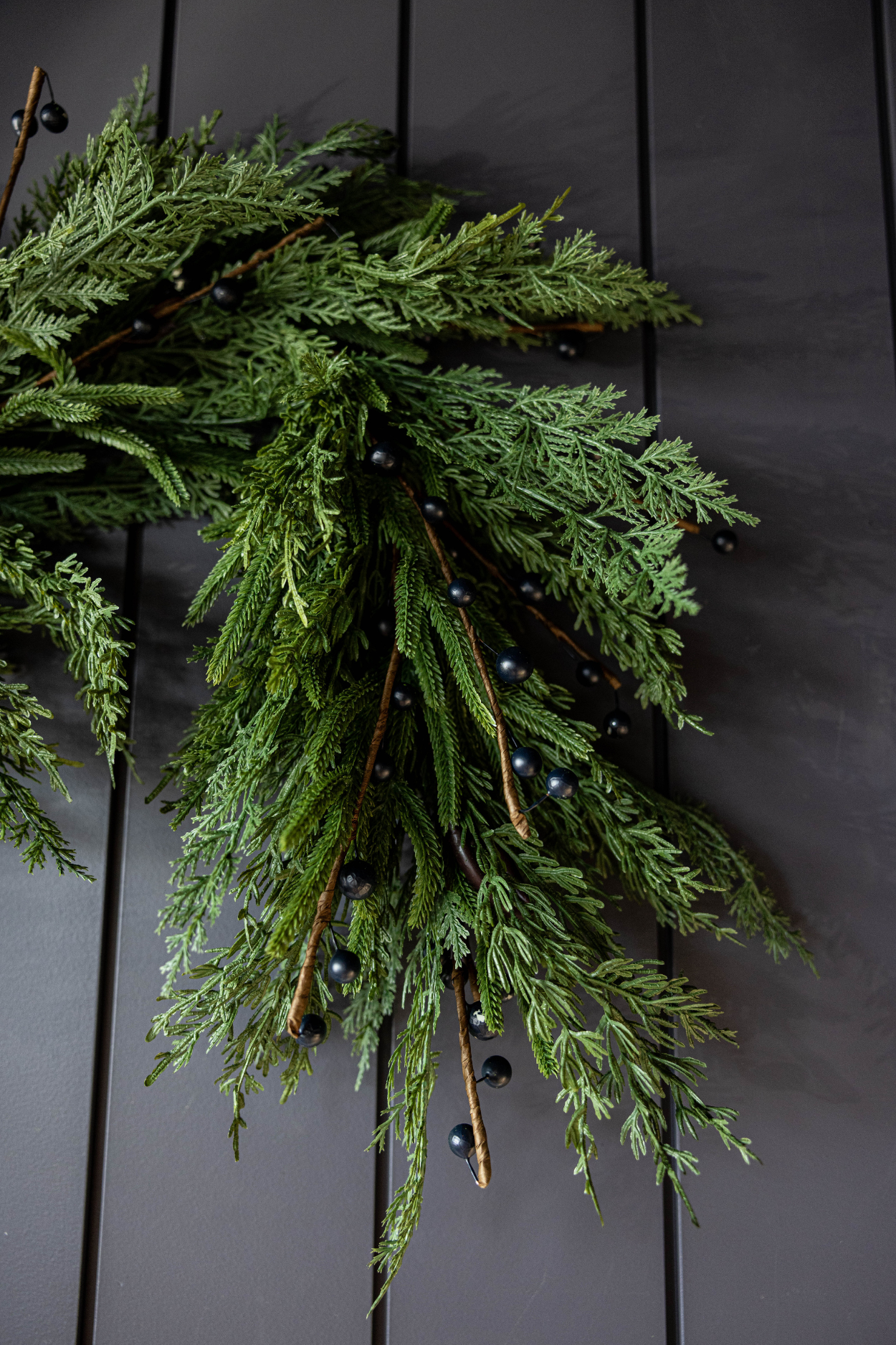 Navy Plum Berry Norfolk Cypress Real Touch Garland by Luxe B Co. is a high-quality, realistic holiday decoration option.