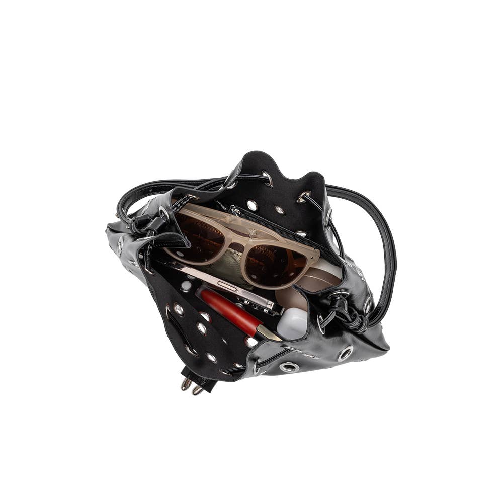 Paloma features bold, eye-catching grommets and a wide bottom for maximum storage. The adjustable strap offers versatile wear, whether slung over your shoulder or worn crossbody. This bag blends fashion and function with ease, perfect for everyday essentials or a night out!