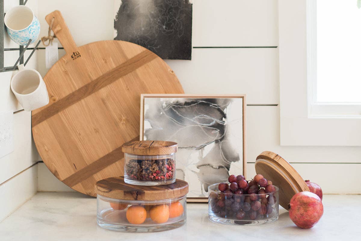 Bring a touch of Italian design and character into the home with an iconic Pine Charcuterie Board. This reclaimed wood board is distinguished by two strips of contrasting timber on one side, while the other side of the board shows the authentic beauty of the reclaimed wood. Inspired by classically rooted designs, intentional knife marks are created by a master craftsman to replicate the look of authentic originals. Versatile in the kitchen, this cheese board is ideal for serving antipasti, crudités or a classic charcuterie spread for your next gathering.
