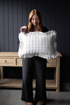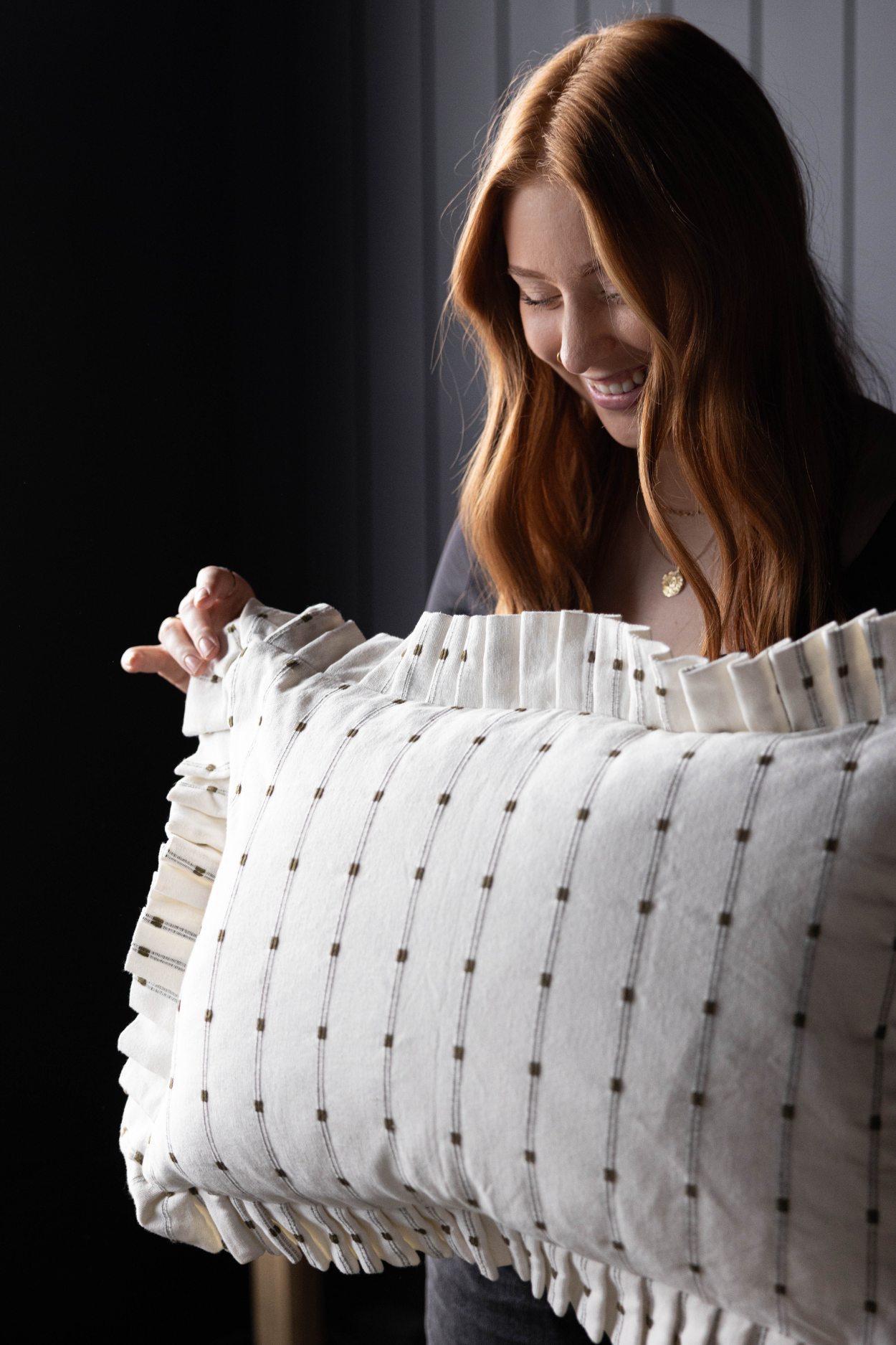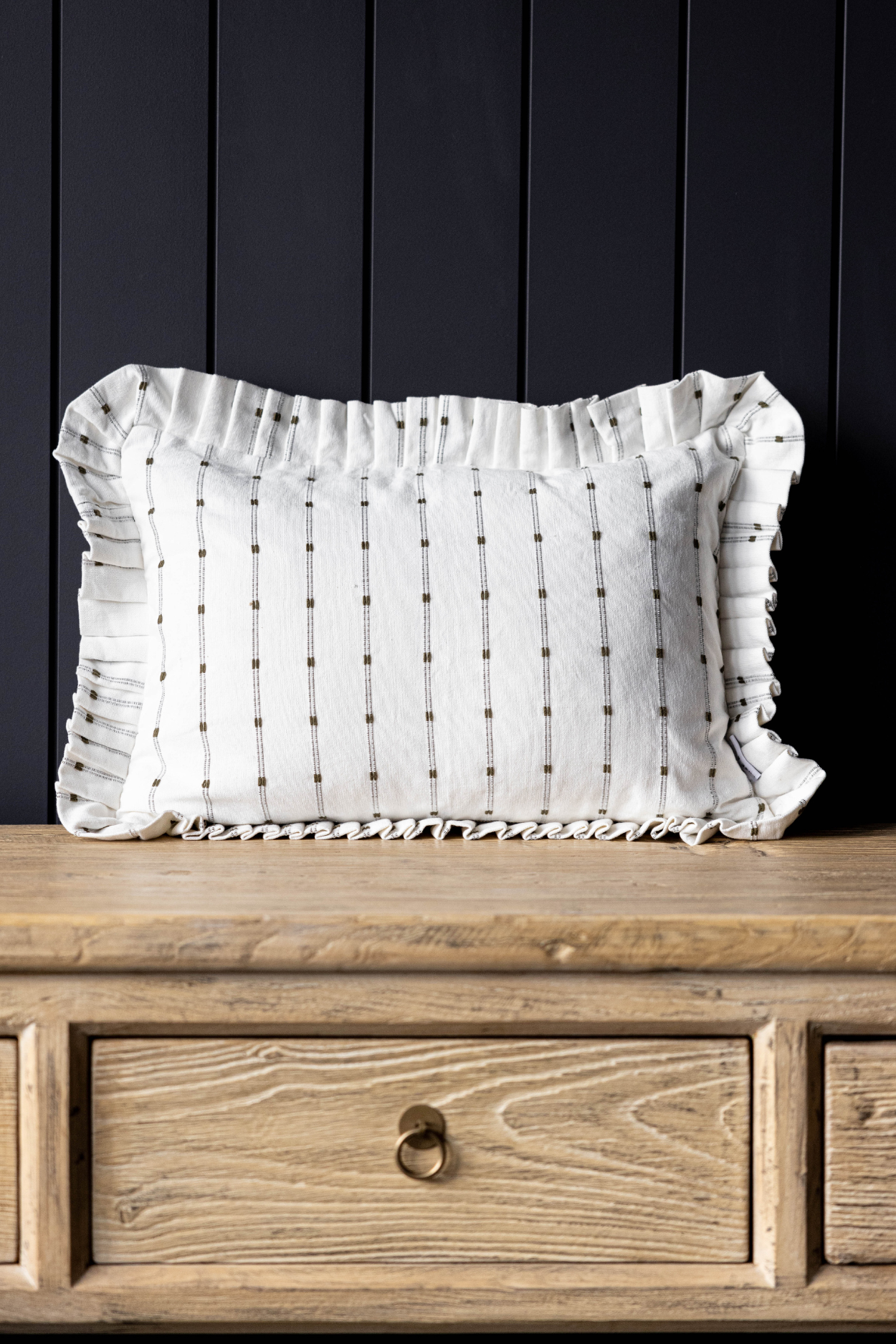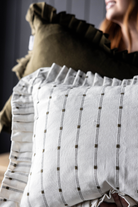 Add an elegant touch to any room with our Ruffle White Embroidery Olive Green Stripes. Crafted from high-quality cotton, this pillow features a unique ruffled edge and a stylish White Embroidery Olive Green Stripes pattern. Elevate your home decor with this luxurious piece.