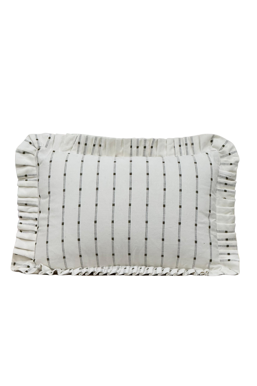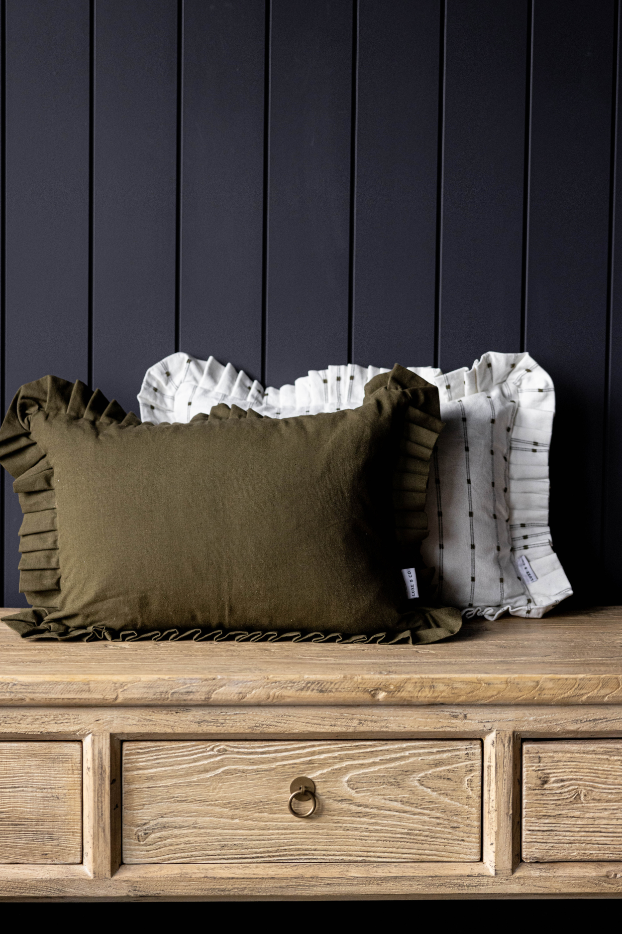 Embroidered Ruffle Lumbar Pillow Cover | Olive Green