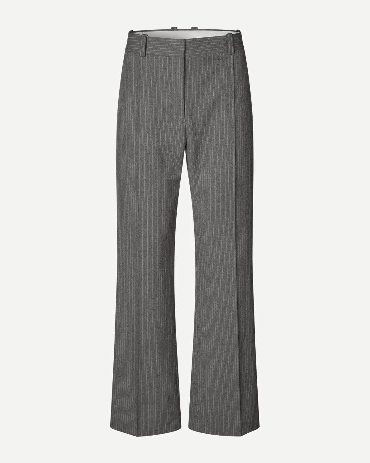 Mid-waist Pants with a regular fit and flared leg. Hidden button and zipper closure at the fly. Side slit pockets on the front and faux welt pockets on the back. Belt loops. Pressed creases at the front and back. Main material made from an elastic blend of recycled polyester.
