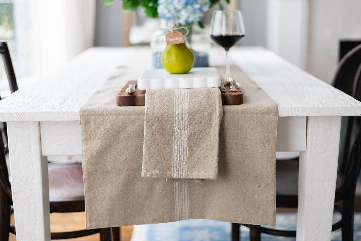 A seamless fusion of heritage and modernity, the French Bistro Collection is designed for those with a discerning eye for both style and substance. Crafted from 100% premium cotton, this table runner is luxuriously soft yet durable for everyday use. The signature striped motif—an homage to traditional Provençal textiles—lends a refined yet understated vibrancy, elevating any kitchen or tablescape with a touch of je ne sais quoi.
