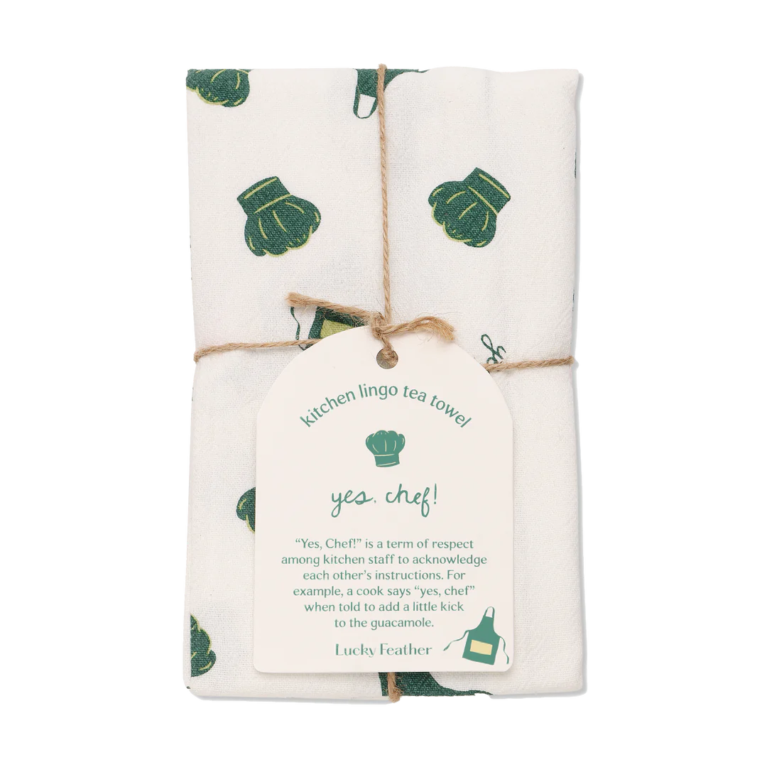Celebrate the iconic kitchen term with this vibrant tea towel featuring vibrant green chef hats and aprons. Made from 100% cotton, it’s as practical as it is stylish—perfect for wiping spills or showcasing your culinary pride. Machine washable for effortless cleanup. The perfect gift for foodies and aspiring chefs alike!