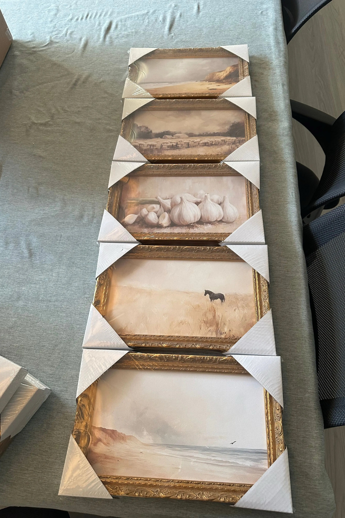Vintage European Town French Brass Gold Mould Framed Art by Luxe B Co. This stunning piece, encased in a high-quality frame, enhances the aesthetic of any space. It is ideal for those wanting to add an extra touch of decor to their kitchen, living room, bedroom, or shelf display.