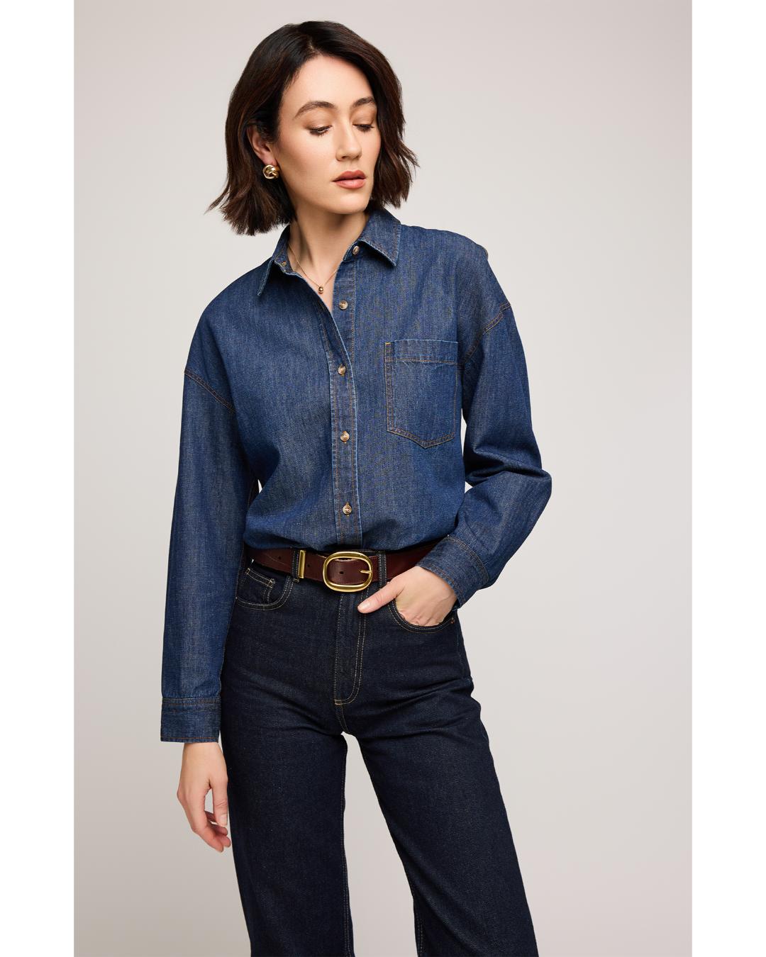 Whitney Denim Button Down Shirt | Dark Wash
